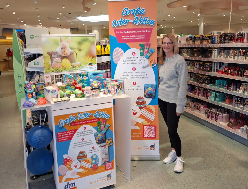 „Gerade zu Ostern möchten viele Menschen etwas Gutes tun. Mit der Osteraktion schaffen wir eine unkomplizierte Möglichkeit, gezielt zu helfen und gleichzeitig Freude zu schenken“, erklären Yvonne Ledebur und Dennis Kokoska, Filialleiter der dm-Standorte in Neustadt und Nienburg. Die Kleinen Strolche sind dankbar für die Aktion: „Bade- und Bastelsachen benötigen wir rund ums Jahr“, so Petra Kothe vom e.V. „Uns ist wichtig, dass wir für unsere Kids besondere Momente schaffen und ein Stückchen Kindheit nachholen.“